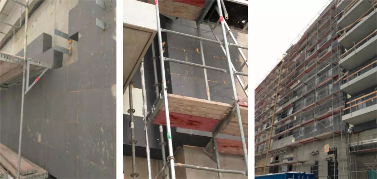 (2)石墨聚苯乙烯是由德國BASF公司首先開發(fā)的新型隔熱保溫材料。同普通的EPS板相比,石墨聚苯板具有更低的導熱系數(shù)和更好的耐久性和耐候性的特性,深受人們喜愛。無論在歐洲還是國內(nèi),石墨聚苯乙烯常被選作為被動房外圍護結(jié)構(gòu)的保溫材料。近年來,國內(nèi)有企業(yè)潛心研發(fā),瞄準中國被動房市場的需求,開發(fā)出石墨聚苯乙烯專有技術(shù),其綜合性能媲美世界先進水平,在國內(nèi)外被動房領(lǐng)域大量使用(如圖2、圖3所示)。