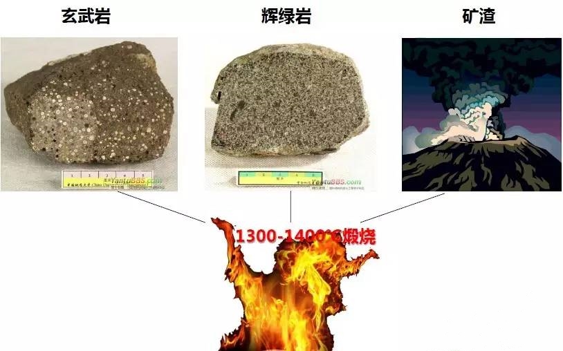 巖棉原材料主要由玄武巖、輝綠巖、礦渣等組成,經(jīng)過1300-1400℃的高溫煅燒。