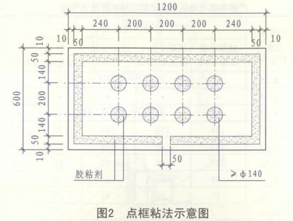 ?。?)粘貼巖棉時(shí),膠粘劑應(yīng)涂在巖棉背面,膠粘劑在巖棉板粘貼面上的布膠按照下圖可采用點(diǎn)框法布膠,布膠部位宜與錨固件相對(duì)應(yīng),板邊一周涂抹大約 80mm 寬的粘膠劑,中間粘結(jié)點(diǎn)的尺寸不小于Φ150mm,巖棉板與基礎(chǔ)墻面的實(shí)際有效粘結(jié)面積不應(yīng)小于巖棉板面積的50﹪,板的側(cè)面不得涂抹或沾有膠粘劑,板間縫隙不得大于1mm,板間高差不得大于1.5mm。寬度小于300mm 的小塊巖棉板粘貼時(shí)采用滿布膠方法。