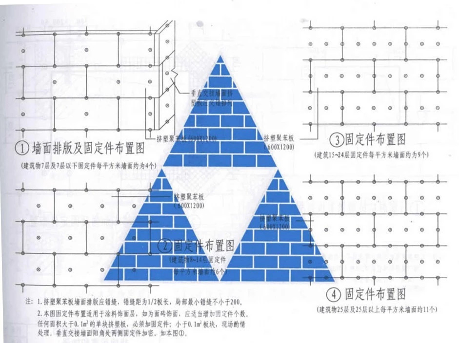 (4)固定件加密:一般在陽(yáng)角、門(mén)窗洞口邊緣區(qū)、檐口下部加密處理,距離間隔300mm。