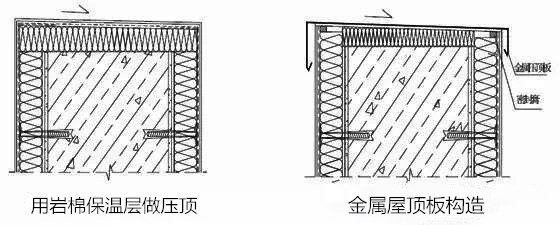 女兒墻保溫實(shí)施雙側(cè)保溫,其中外側(cè)保溫同外墻大面保溫,內(nèi)側(cè)外保溫可施工至高度距離屋面完成面不低于300mm。女兒墻頂部應(yīng)設(shè)混凝土壓頂或金屬板蓋板。并向內(nèi)做出一定的坡度,以利散水。