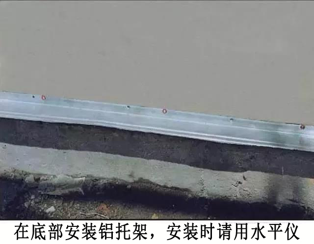 三、保溫板的鋪貼 在粉刷施工完畢之后,開始進行苯板的鋪貼。 1、苯板鋪貼前需要進行以下準備工作: 吊線:在一操作層的鋪貼起始面沿墻面四周彈出水平線。在底部安裝鋁托架,安裝時請用水平儀。