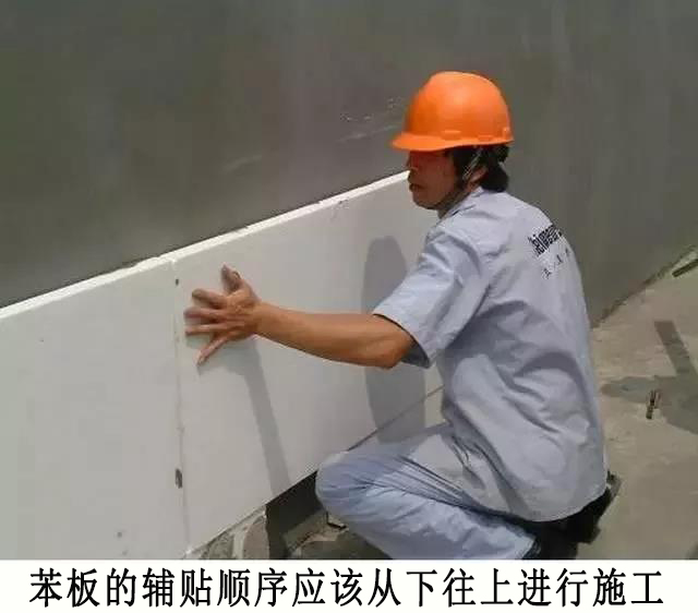 2、考慮到在粘結劑未干前保溫板沒有足夠的承載力,因此苯板的鋪貼順序應該從下往上進行施工,鋪貼時還必須采用靠尺進行施工,以保證平整度要求。 3、板的排列:要求自墻面底部起橫排布板,逐塊粘貼,每排按順序依次粘貼,排與排之間錯縫粘貼,外轉角也應錯縫。每一排的板與板間接縫要錯開1/2板長,苯板最小長度應保證在200㎜以上(包括200㎜)。所有保溫板之間的縫隙不能超過1.5mm。