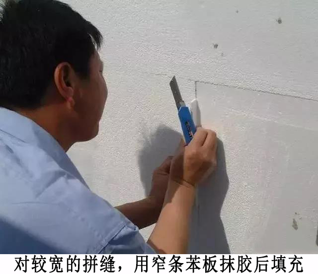 5、縫隙修補:保溫板的尺寸偏差造成的縫隙(大于1.5mm寬)應該用條形保溫材料密封住。