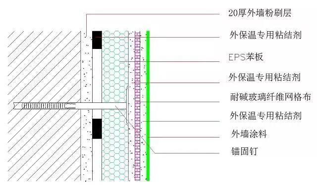 1、面層材料為文化石,EPS保溫板應選用25kg/m3的板材,在打磨完畢后,進行打設錨固釘,錨固釘?shù)拇蛟O數(shù)量確定為每平米不少于6個。錨固釘打設應當凹進苯板1-2㎜,不得突出板面。錨固釘打設完畢后,需要立即跟進對錨釘圓盤面進行抹平,使用材料為粘結抹面砂漿。