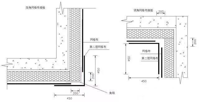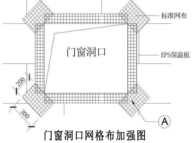 9、必須先上膠再埋網(wǎng),嚴禁邊鋪網(wǎng)邊上膠。 10、當遇到門窗洞口時,應在洞口四角處沿45度方向補貼一塊標準網(wǎng)格布長30*20cm,以防開裂。而且,此步驟應在大面積鋪設之前完成。門窗處和接口處需要使用丙烯酸密封膠灌注防水。 11、粘結劑滿批后達到墻面平整,完成后若有不平整處,則在間隔6-8小時后進行打磨平整,以成為合格的涂料基層。 12、建筑底層需要再鋪設一層加強型網(wǎng)格布,以保護受撞擊的墻體。