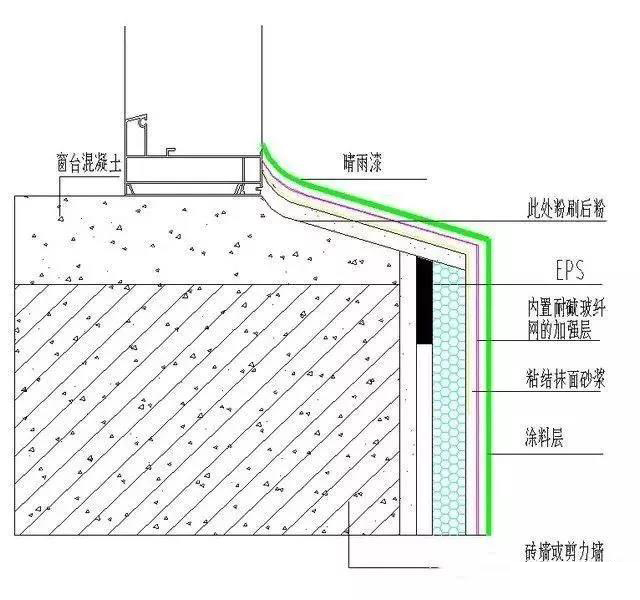 七、窗臺保溫收頭 1、窗臺不做保溫的做法