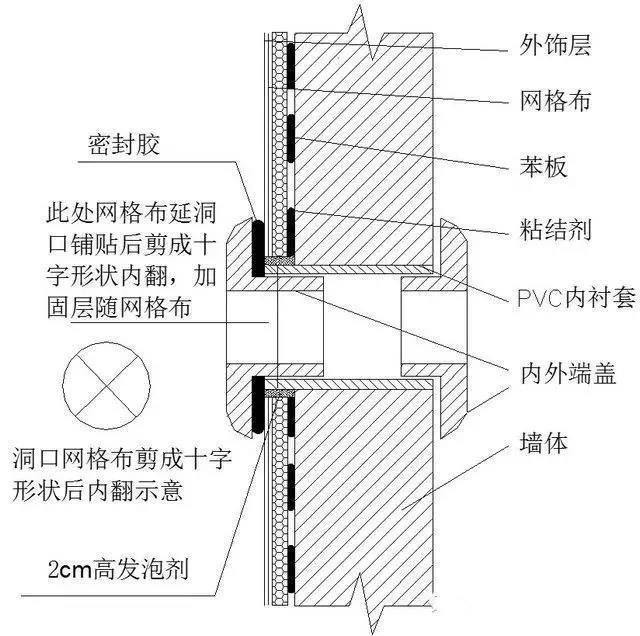 穿墻管在保溫板粘貼前施工完畢。保溫板粘貼完畢,由保溫收頭