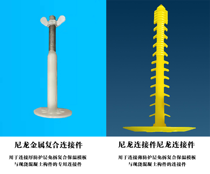 CQ 免拆復合保溫模板系統(tǒng)連接件呈梅花狀布置,每平方米個數(shù)不少于6個,進入混凝土基層的有效錨固深度最少為30mm,該連接件在澆筑前起到支撐作用,澆筑后起到拉筋作用,設計簡便,安裝方便。