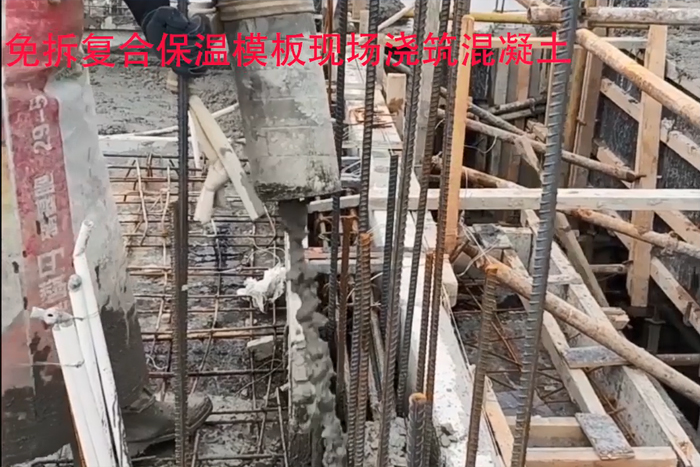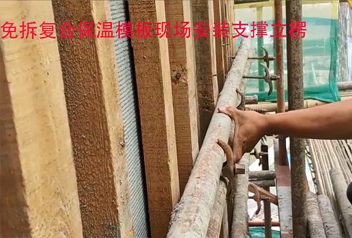 CQ 免拆復合保溫模板系統(tǒng)連接件中心間距最小距離為200mm,最大不超過650mm,施工過程中采用普通混凝土澆筑保溫層,可在施工時按規(guī)范要求振搗,因在免拆模板外加裝有固定的立楞、次楞,保證振搗施工時保溫板不會被破壞。符合傳統(tǒng)施工工藝施工,不限制工人的監(jiān)工習慣。