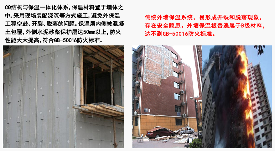 CQ免拆模板的出現(xiàn)打破了以往傳統(tǒng)建筑外墻保溫易脫落、開裂,防火保溫?zé)o法同步的問題,該模板通過實(shí)施節(jié)能結(jié)構(gòu)一體化技術(shù),實(shí)現(xiàn)了建筑保溫二次施工想同步施工的轉(zhuǎn)變,建筑材料防火向建筑結(jié)構(gòu)防火的額轉(zhuǎn)變,建筑保溫全壽命周期向與墻體結(jié)構(gòu)同壽命轉(zhuǎn)變,有效避免了外墻外保溫技術(shù)的工程質(zhì)量和消防安全問題的發(fā)生,因此,全面加強(qiáng)建筑節(jié)能結(jié)構(gòu)一體化技術(shù)的應(yīng)用,讓外墻保溫方法改造升級是目前刻不容緩的!